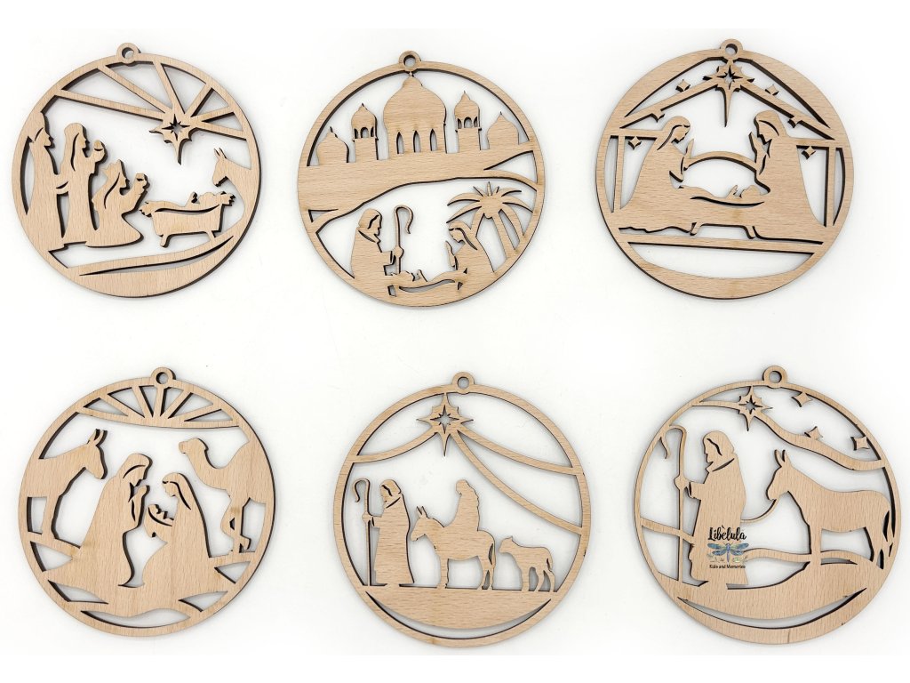 Tieto drevené vianočné ozdoby s motívom svätej noci spájajú jemné remeselné spracovanie s posolstvom Vianoc. V siluetách anjelov, svätej rodiny či betlehema sa ukrýva tichá krása a duchovný odkaz sviatkov.