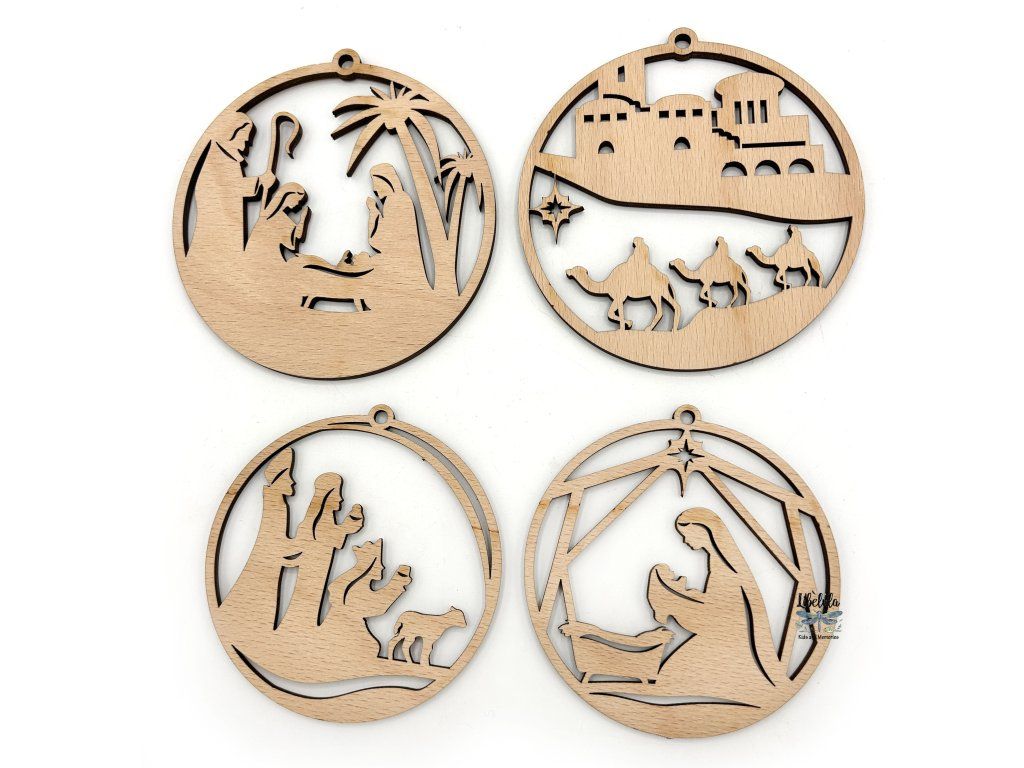 Tieto drevené vianočné ozdoby s motívom svätej noci spájajú jemné remeselné spracovanie s posolstvom Vianoc. V siluetách anjelov, svätej rodiny či betlehema sa ukrýva tichá krása a duchovný odkaz sviatkov.