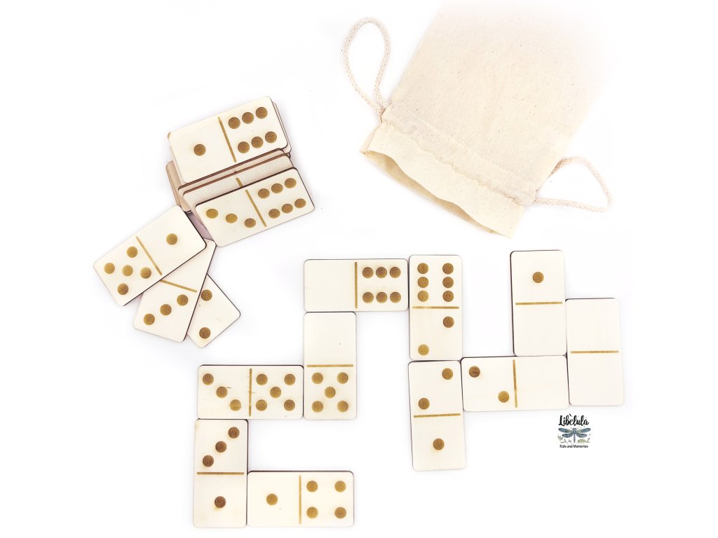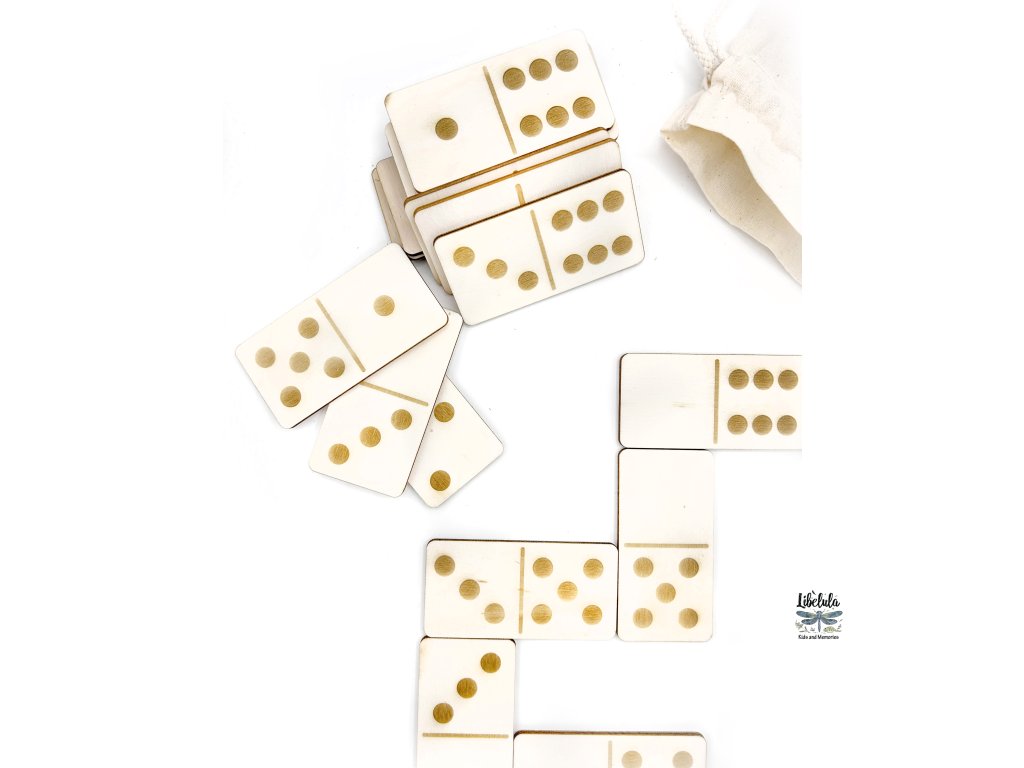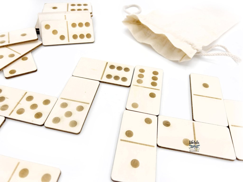 ♻️ Hra obsahuje 28 dielikov z topoľovej preglejky, jemne gravírovaných, zabalených v praktickom bavlnenom vrecúšku.