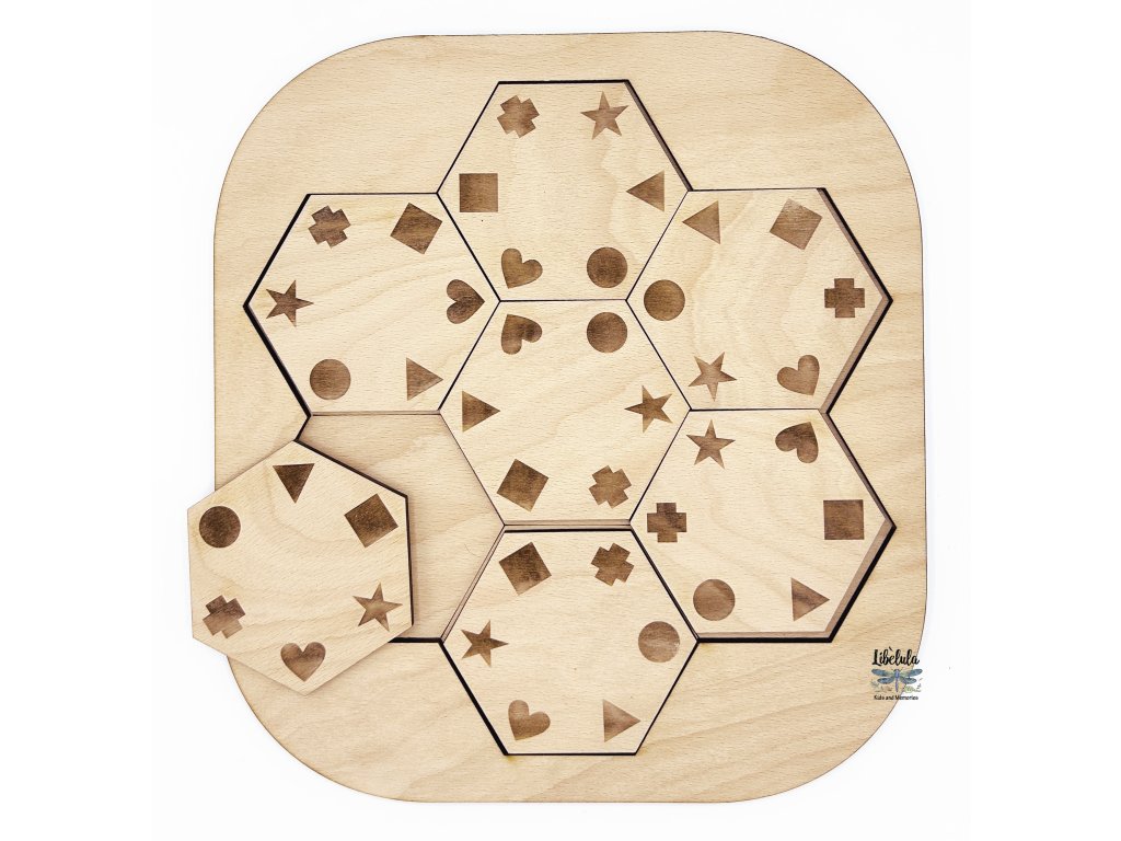 Drevené logické puzzle – Tvary v šesťuholníkoch