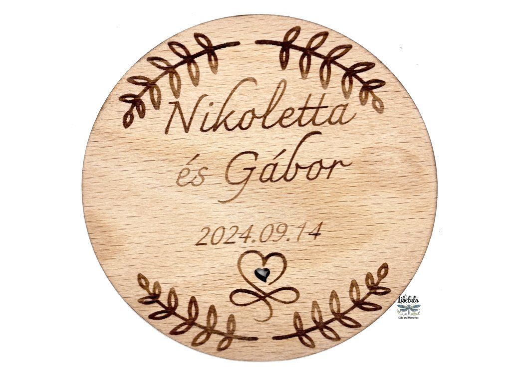 Drevené svadobné podtácky s menom a dátumom (personalizované) č. 1