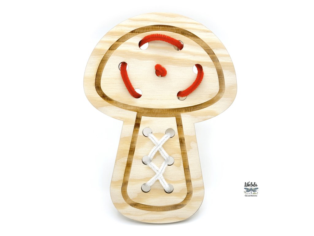 Ide o drevený tvar s veľkými otvormi, do ktorých môžu deti prepletať chlpaté drôtiky alebo šnúrku. Je to hračka aj pomôcka, ktorá rozvíja koordináciu očí a rúk, trpezlivosť a samostatnosť.