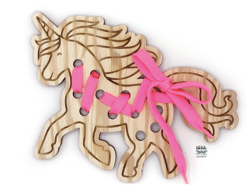 Drevené tvary na šnurovanie - MaxiDots -Jednorožec