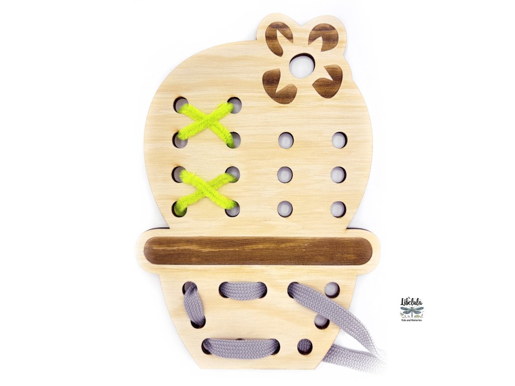 Drevené tvary na šnurovanie - MaxiDots - Kaktus