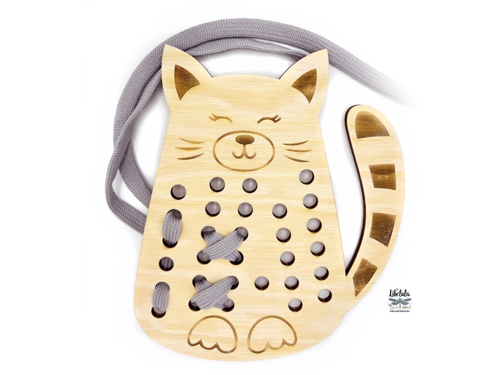 Drevené tvary na šnurovanie - MaxiDots -Mačiatko