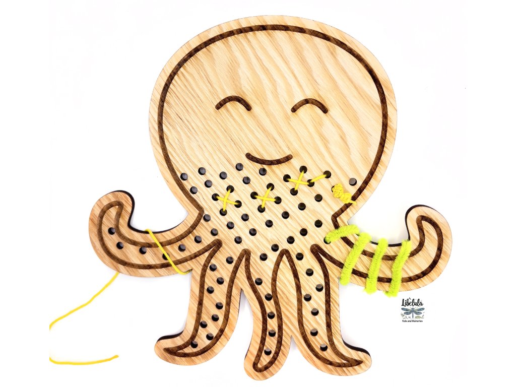 Drevené tvary na šnurovanie - MiniDots - Chobotnica