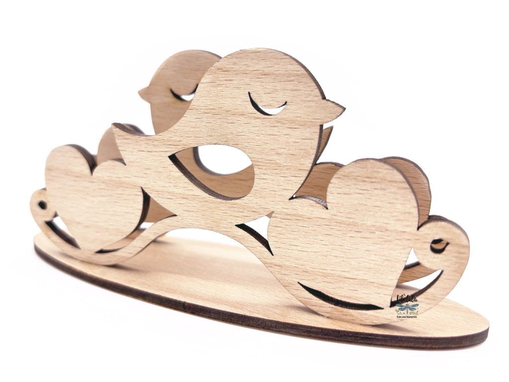 Drevený stojan na servítky - Vtáčik a srdiečka