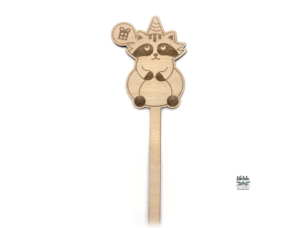 Drevený zápich na tortu – Medvedík čistotný (Mýval)