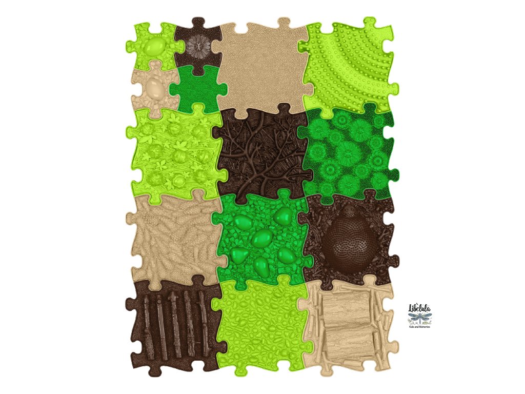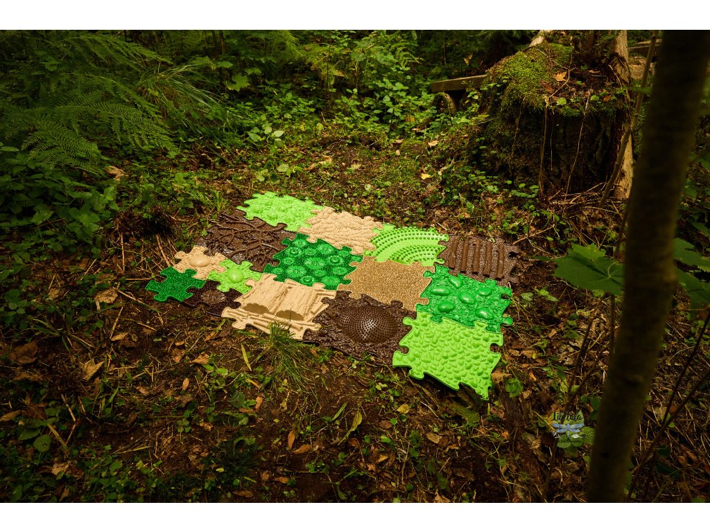 Set Dotyk prírody napodobňuje povrchy lesov, lúk a záhrad – ako korene, kamienky či tráva – a prináša zážitok z chôdze naboso priamo do vašej domácnosti. Vďaka striedaniu mäkkých a tvrdých textúr stimuluje chodidlá, podporuje zdravé držanie tela a zlepšuje rovnováhu aj koordináciu. Ideálny pre deti aj dospelých, na hru, cvičenie aj terapiu.