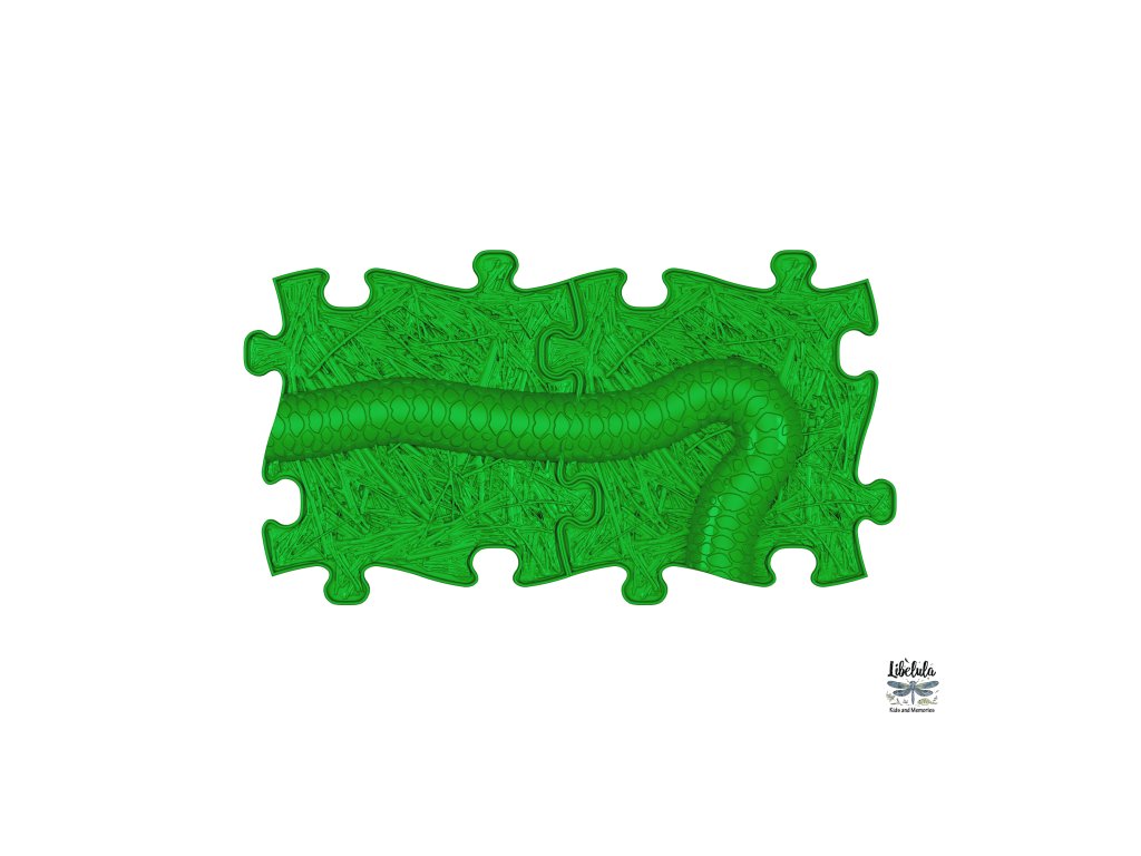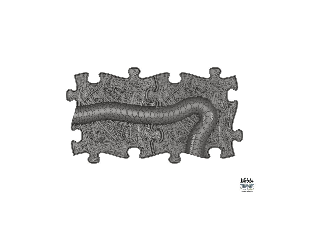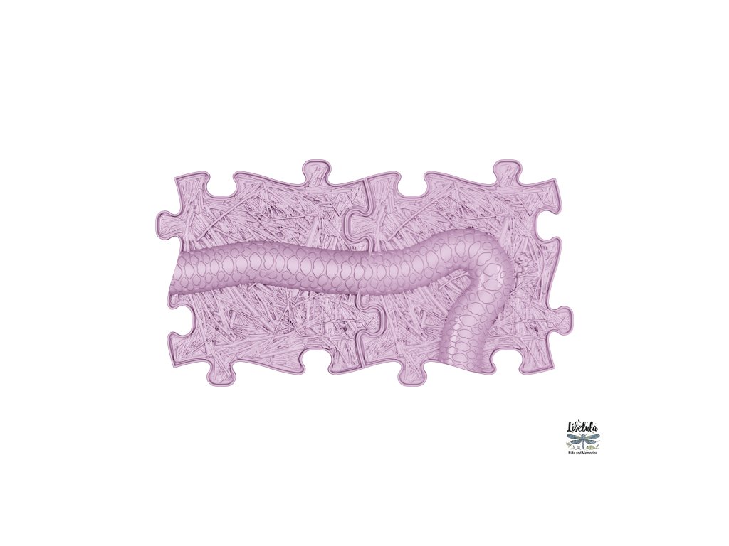 🦶 Každý diel má realistický štruktúrovaný povrch inšpirovaný prírodou, ktorý precvičí pozdĺžnu aj priečnu klenbu. Chôdza po hadovi je zábavná, no zároveň intenzívna stimulácia chodidiel, členkov a kolien – ako u detí, tak aj u dospelých. Vhodné aj ako doplnok k akýmkoľvek ortopedickým zostavám MUFFIK.