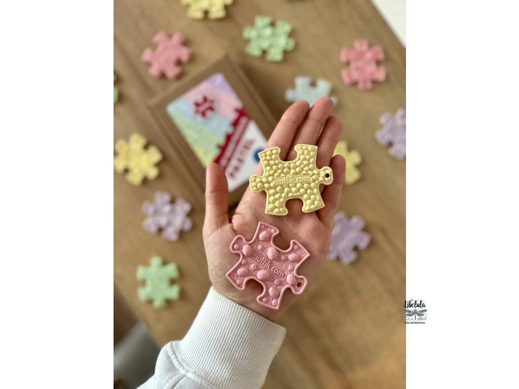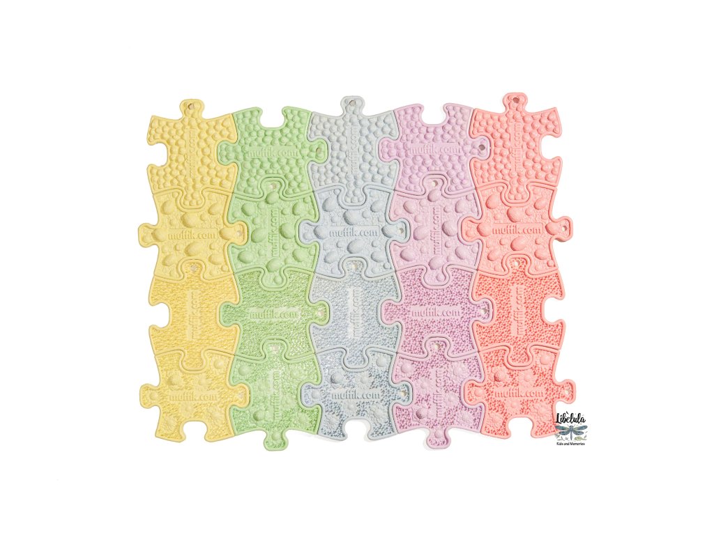 🧩 Set obsahuje 20 rôznych pastelových puzzlíkov, ktoré slúžia nielen ako zábavná hračka, ale aj ako inovatívny nástroj učenia a rozvoja. Výborne dopĺňajú klasické ortopedické podložky MUFFIK – kombináciou vzniká priestor na rôzne aktivity, ako je taktilné pexeso alebo učenie farieb hmatom.