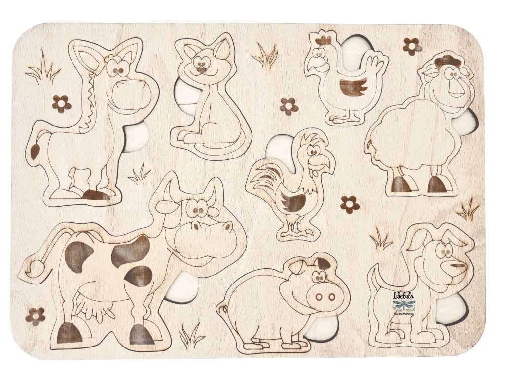 Mysli&Vlož – DREVENÁ vkladačka – ZVIERATKÁ NA FARME