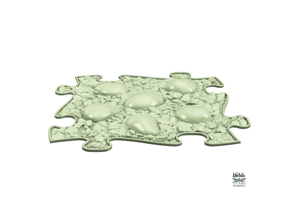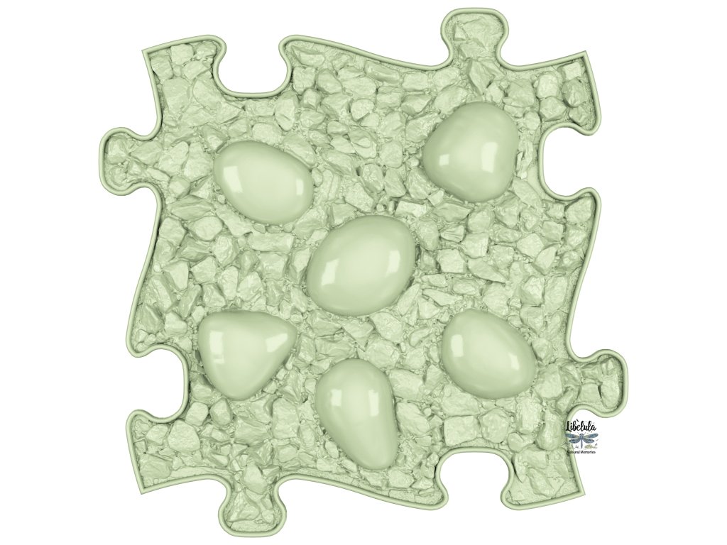 Táto podložka s motívom dinosaurích vajíčok ukrytých medzi kámenmi je ideálna pre deti, ktoré začínajú chodiť. Povrch jemne masíruje chodidlá, posilňuje členky, kolená aj stred tela, a zároveň podporuje rozvoj správnej chôdze. U starších detí precvičuje pozdĺžnu i priečnu klenbu chodidla a pomáha predchádzať plochej nohe. Použitie tejto podložky môže tiež slúžiť dospelým ako žilová gymnastika – na zlepšenie krvného obehu a uvoľnenie unavených chodidiel.