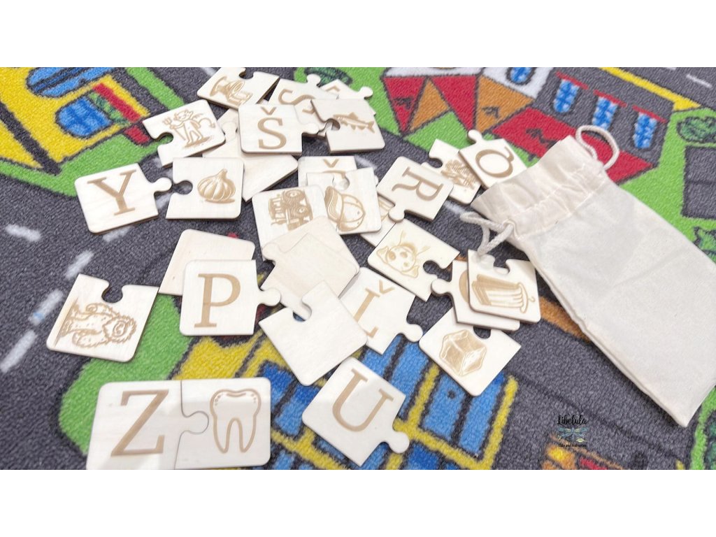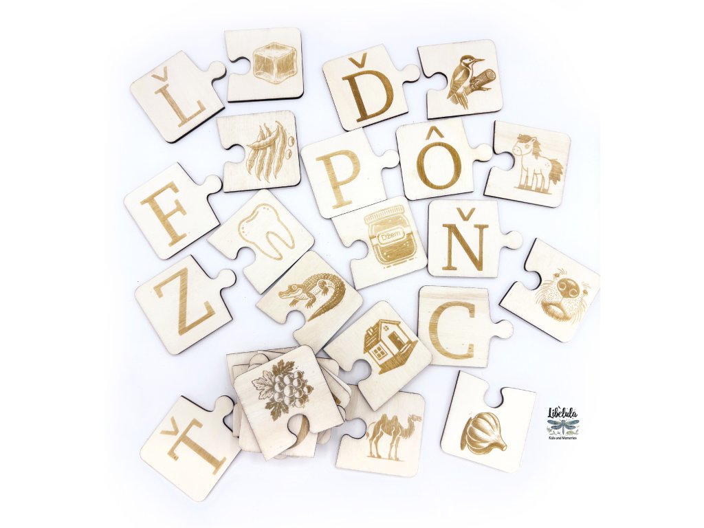 Písmenkáčik - Abecedné Puzzle – spájanie písmen a obrázkov (drevené)