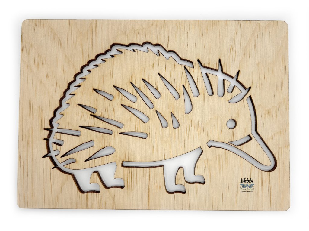 Pichľavý bádateľ s dlhým jazykom! 🦔 Drevená šablóna v tvare ježury je ideálna na obťahovanie ceruzkou, fixkou alebo štetcom.