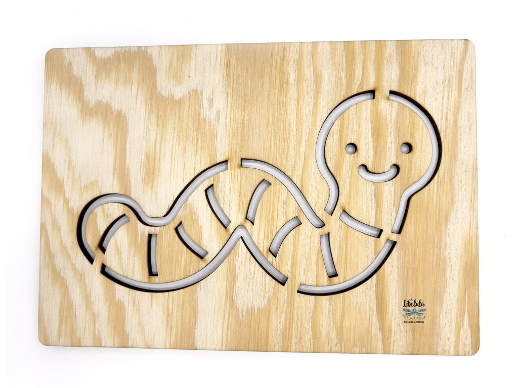 Dôležitý obyvateľ pôdy! 🪱 Drevená šablóna v tvare dážďovky je ideálna na obťahovanie ceruzkou, fixkou alebo štetcom.