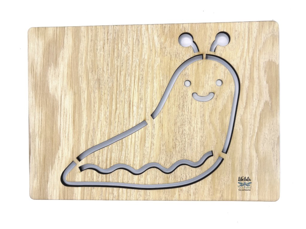 Hladký a tichý plazivec z vlhkej trávy! 🌱 Drevená šablóna v tvare slizniaka je ideálna na obťahovanie ceruzkou, fixkou alebo štetcom.
