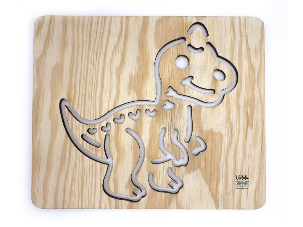 Mäsožravec s rohom na nose a ostrými zubami! 🦖 Drevená šablóna v tvare ceratosaura je ideálna na obťahovanie ceruzkou, fixkou alebo štetcom.