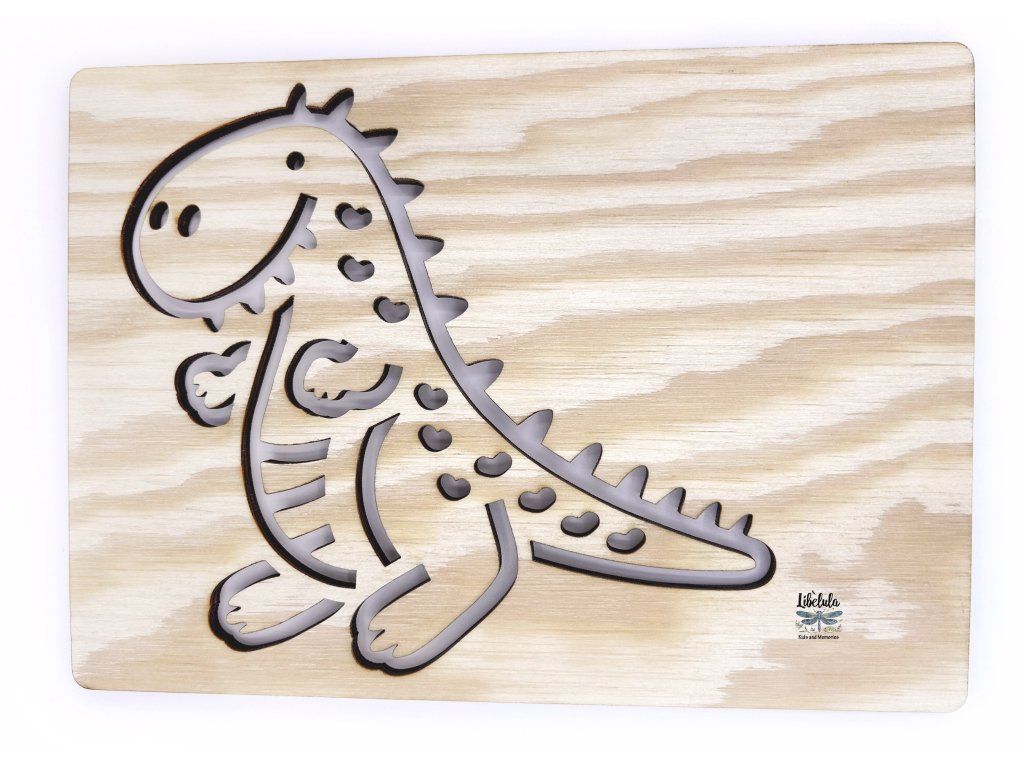 Slávny mäsožravec s obrovskými zubami! 🦖 Drevená šablóna v tvare tyranosaura je ideálna na obťahovanie ceruzkou, fixkou alebo štetcom.