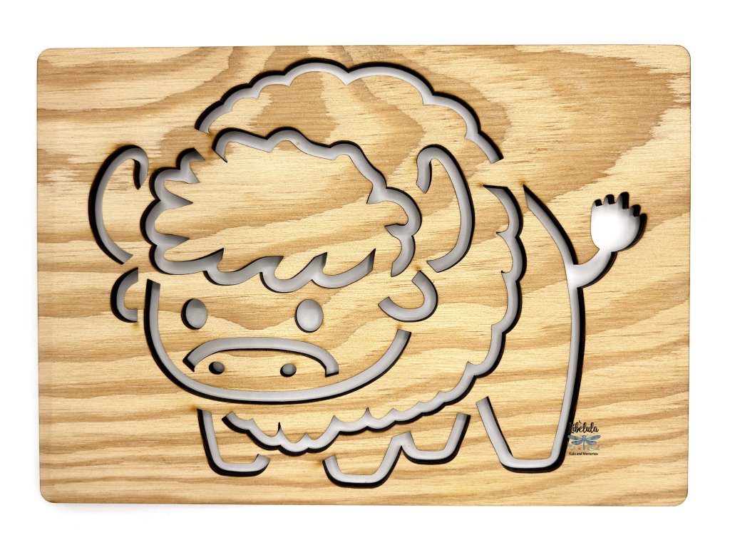 Drevená šablóna v tvare bizóna 🦬 – silný lesný motív na obťahovanie ceruzkou alebo pastelkou. Podporuje tvorivosť a poznávanie divokej prírody. ✏️✋🌿