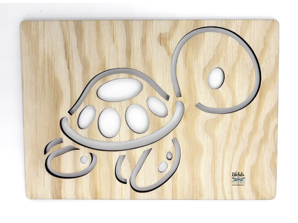 Drevená šablóna v tvare morskej korytnačky 🐢 – vhodná na obťahovanie ceruzkou alebo pastelkou. Pomáha rozvíjať jemnú motoriku a vzbudzuje záujem o život pod hladinou. 🌊✋✏️