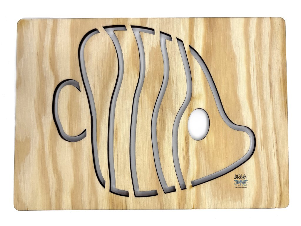 Drevená šablóna v tvare motýlej ryby 🐠 – jemný a nápaditý morský motív na obťahovanie ceruzkou alebo pastelkou. Rozvíja jemnú motoriku a zmysel pre detail. ✏️✋🌊