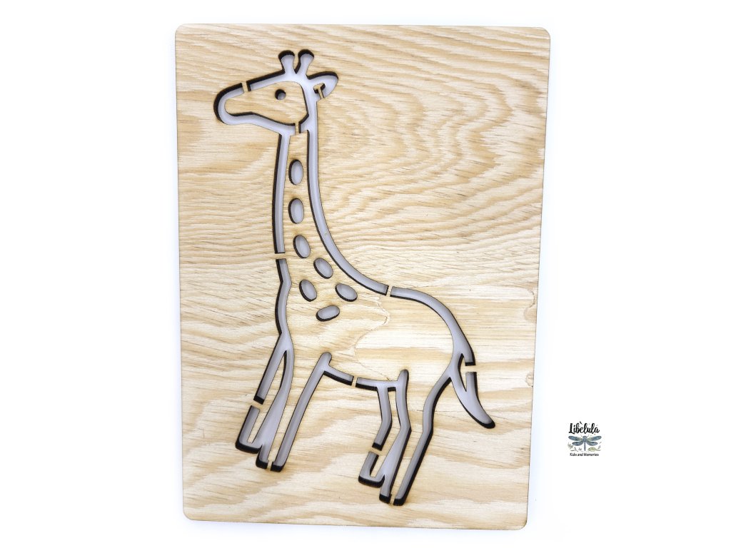 Drevená šablóna v tvare žirafy 🦒 – určená na obťahovanie ceruzkou alebo pastelkou. Pomáha deťom rozvíjať jemnú motoriku a objavovať krásy africkej prírody. ✏️✋🌍