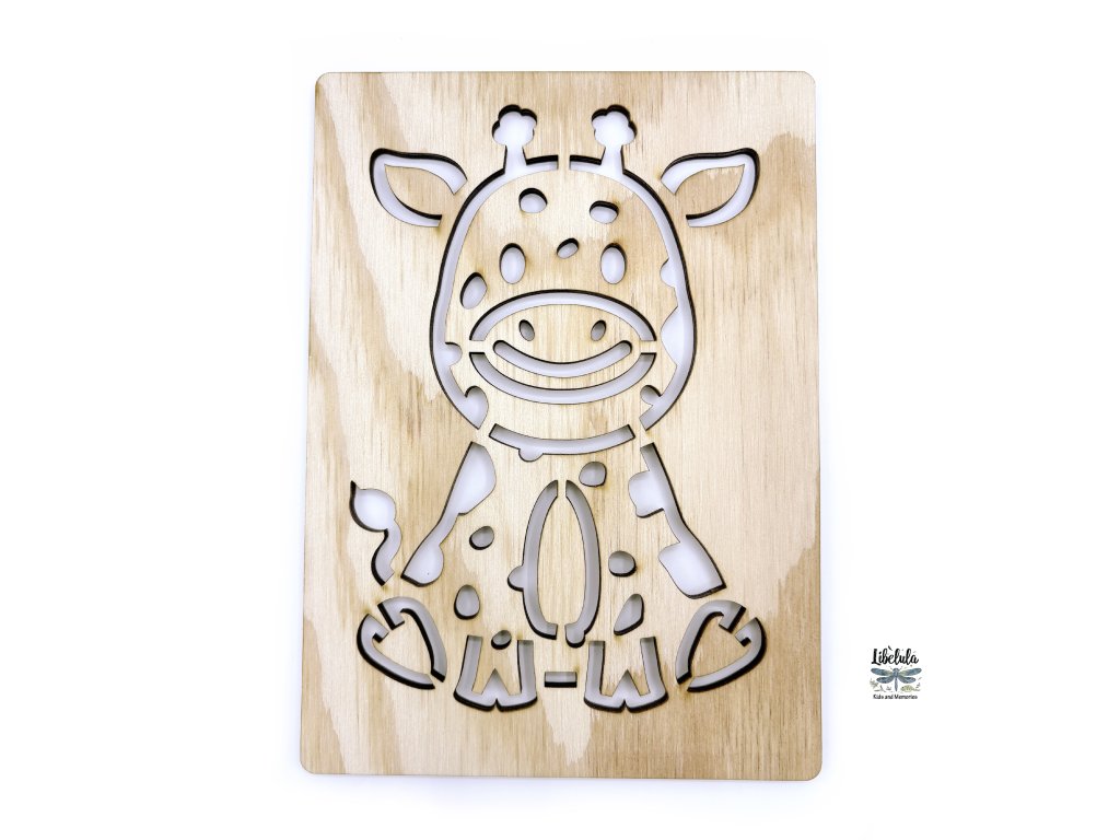 Drevená šablóna v tvare žirafy 🦒 – určená na obťahovanie ceruzkou alebo pastelkou. Pomáha deťom rozvíjať jemnú motoriku a objavovať krásy africkej prírody. ✏️✋🌍