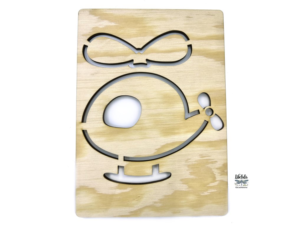 Lietajúci záchranca aj prieskumník! 🚁 Drevená šablóna v tvare vrtuľníka je ideálna na obťahovanie ceruzkou alebo štetcom.