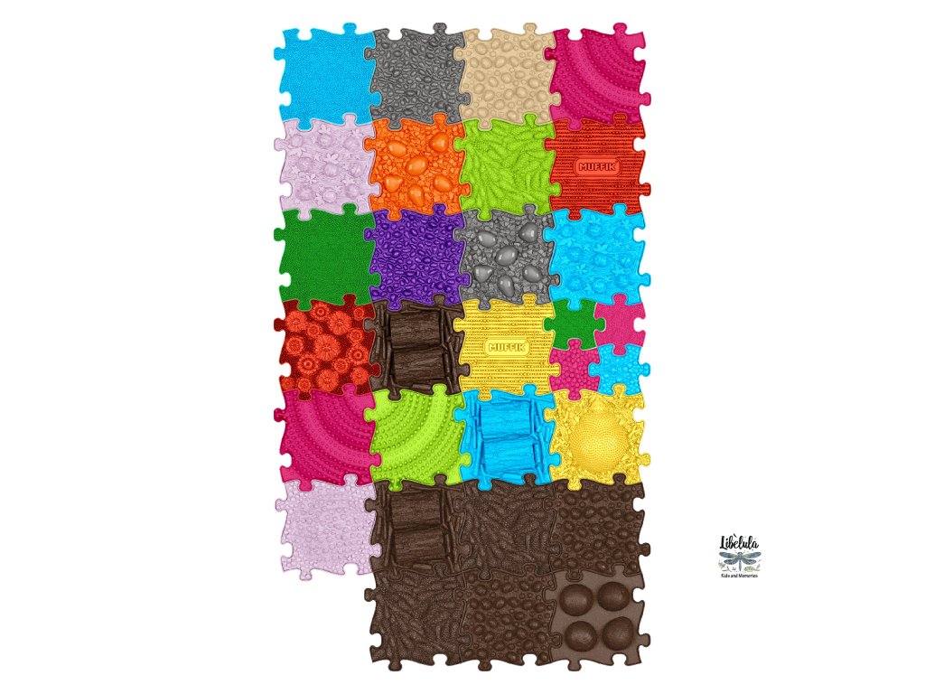 👣 Deti si zamilujú mini podložky, z ktorých si môžu poskladať pestré kombinácie. Farebnosť a rozmanitosť povrchov ich podnieti k učeniu farieb, počítaniu či hrám podľa predlohy.