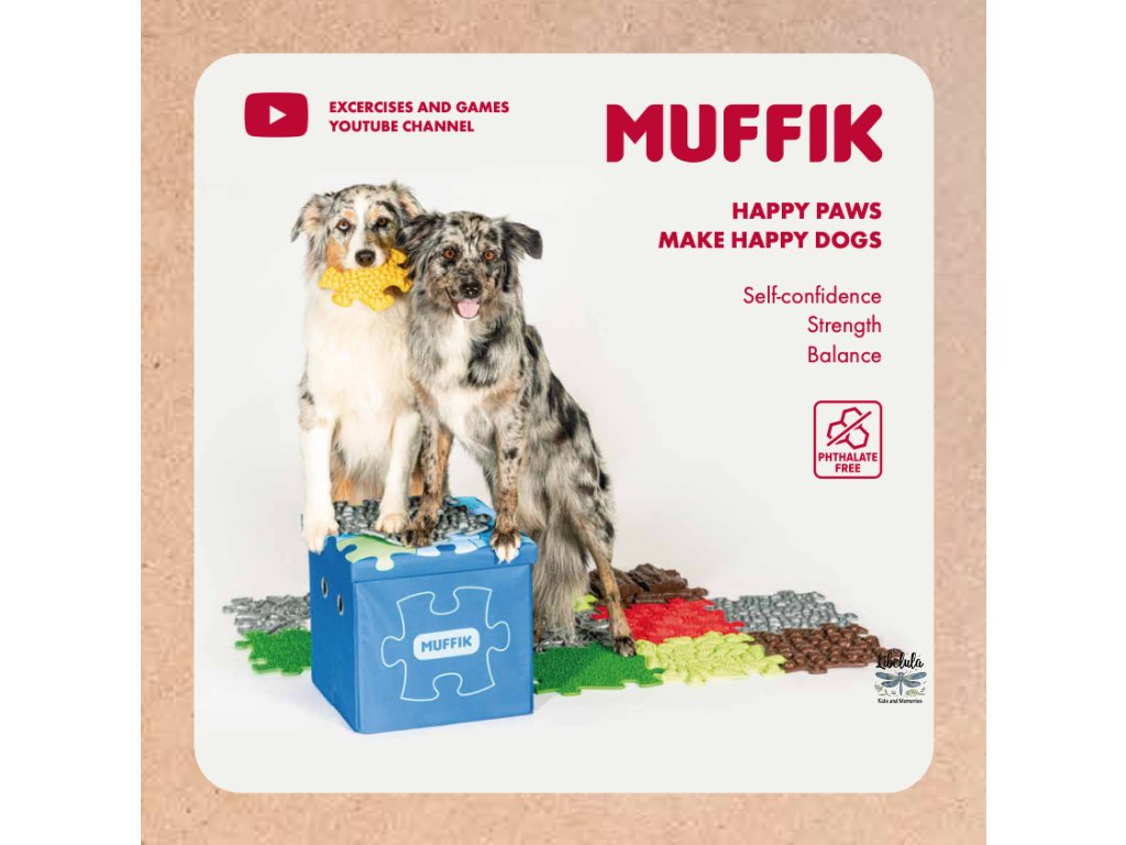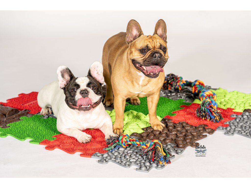 Tento set ortopedických podložiek je špeciálne navrhnutý pre psy – šteniatka aj dospelých. Kombinuje rôzne textúry a tvrdosti pre stimuláciu všestranného vnímania, posilnenie svalstva, zlepšenie rovnováhy a podporu zdravých nohiek.